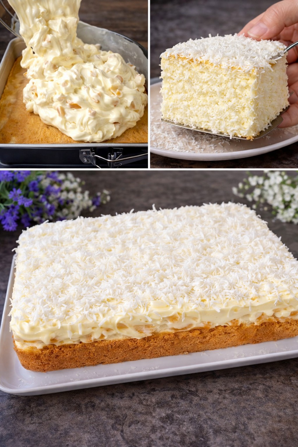 Η δομή του βασίζεται σε τρία επίπεδα: μια σταθερή βάση παντεσπάνι, μια κρεμώδη γέμιση και μια αέρινη επικάλυψη από ινδοκάρυδο.