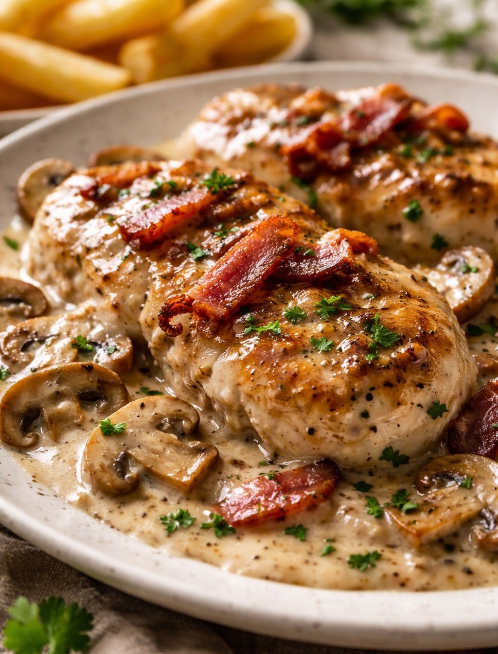 Χοιρινό Φιλέτο σε Κρεμώδη Σάλτσα με Ζαμπόν και Μανιτάρια 🐖🍄