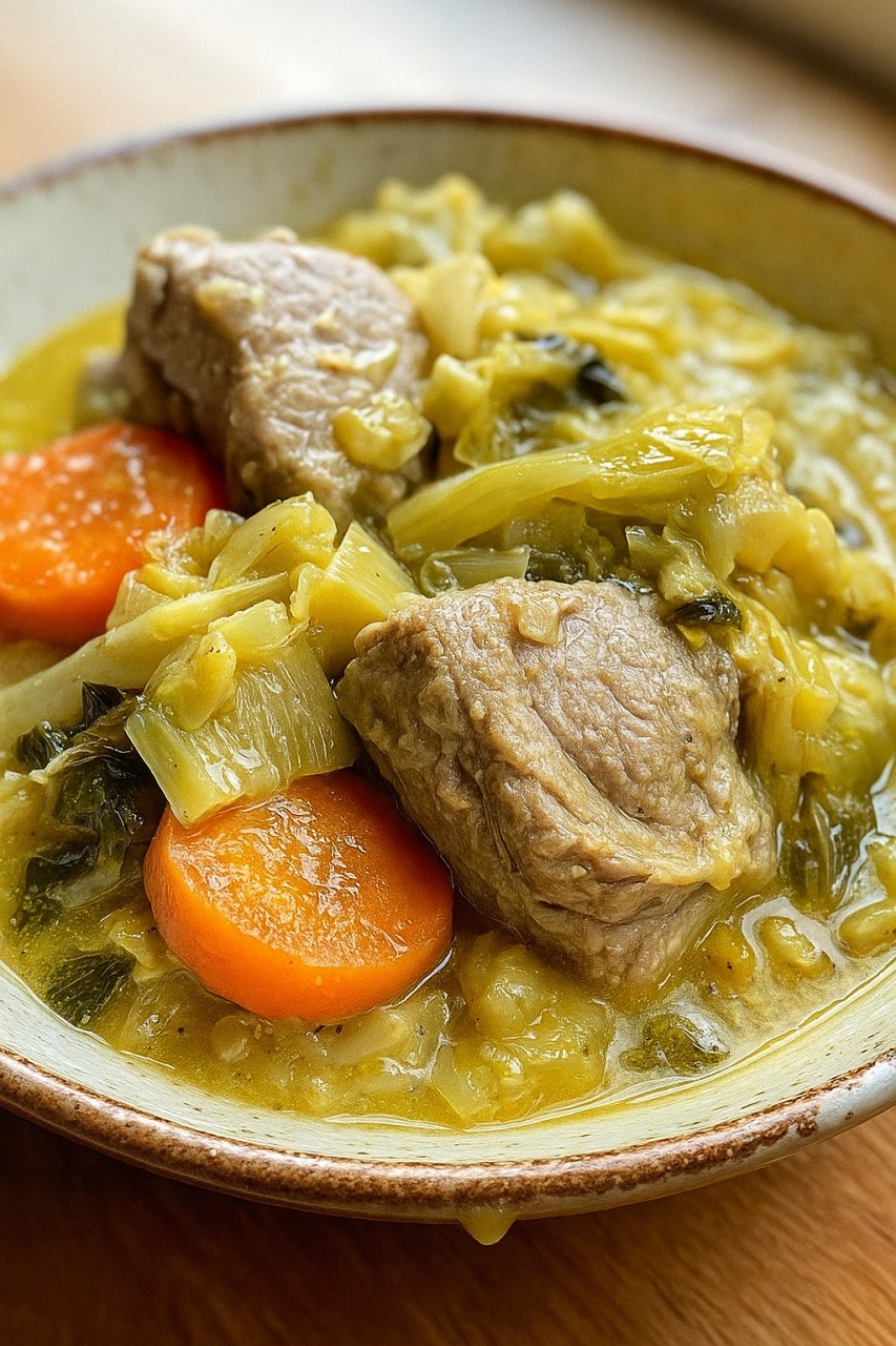 Μια πλούσια σούπα χοιρινού και λάχανου, ζεστή και γεμάτη γεύση. Ιδανική για κρύες βραδιές ή όταν χρειάζεστε ένα χορταστικό γεύμα.